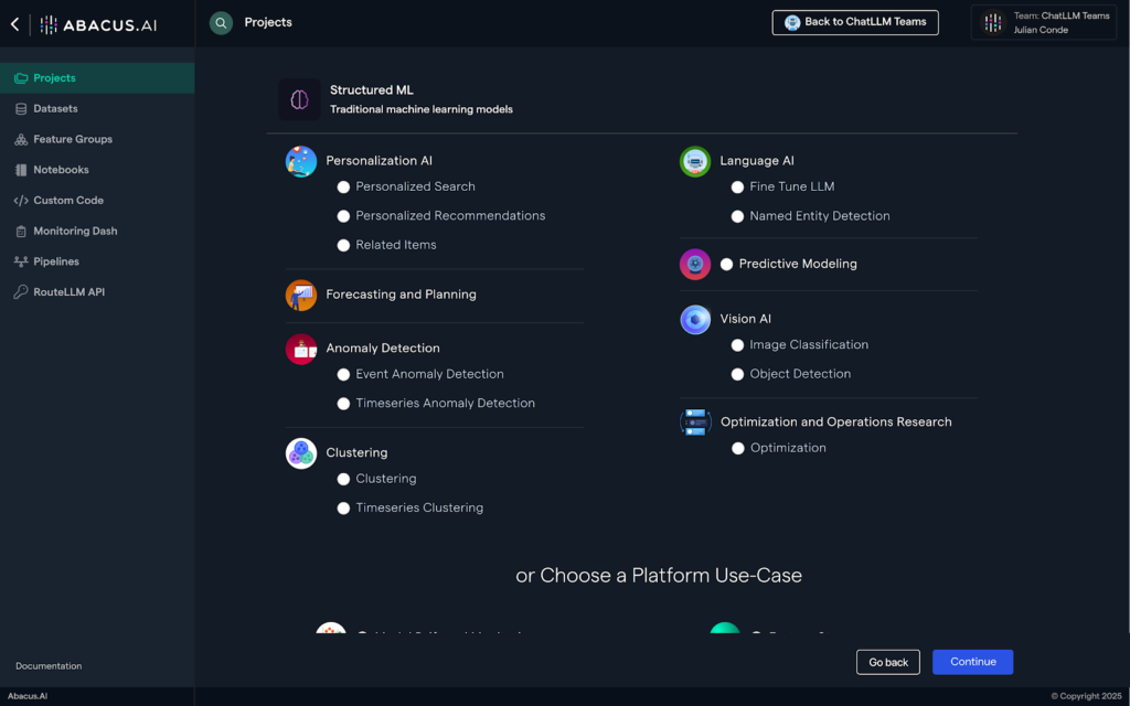 Abacus ai is built for enterprise teams, data leaders, and technology decision makers who want to operationalize AI efficiently. Its primary use cases include predictive analytics, personalization, forecasting, anomaly detection, and generative AI applications.