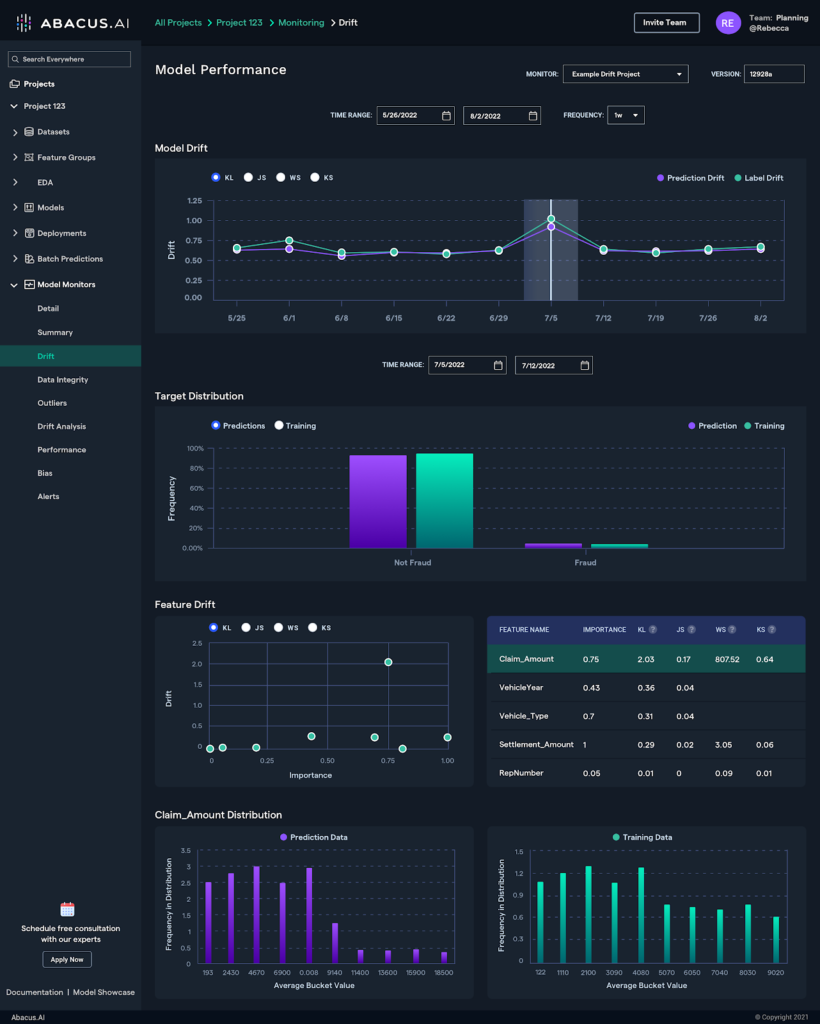 Abacus ai enables real time inference through APIs. This supports applications such as fraud detection, personalization, and dynamic pricing.