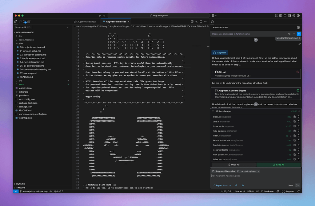 Augment ai generates responses, drafts content, assists with coding, or summarizes documentation.